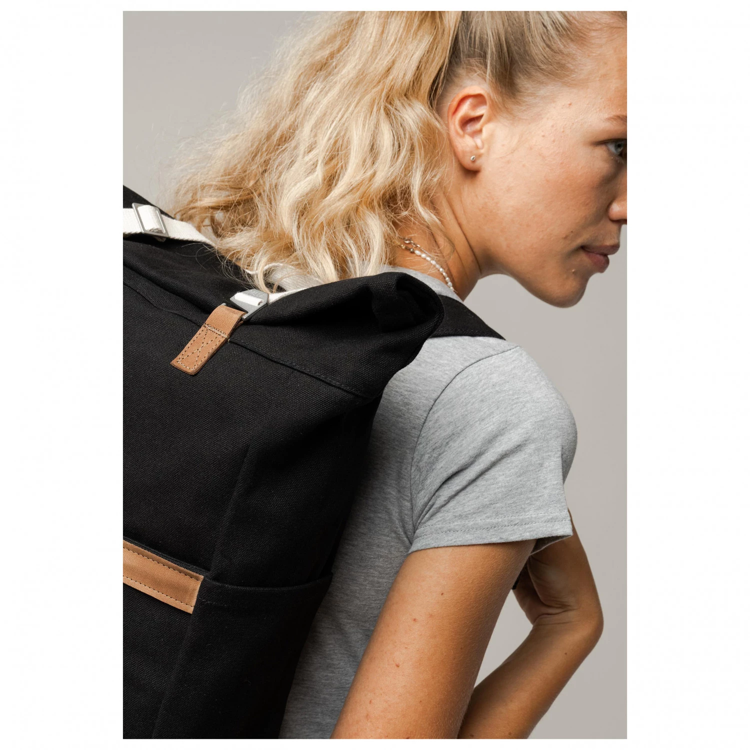 La sac est fabriqué à partir de toile de coton 100 % bio et naturellement imperméable. Les lanières de coton ne sont ni teintes ni blanchies et les empiècements sont en cuir tanné de manière végétale, sans teinture au chrome. Le rembourrage souple au niveau du dos, du fond et des épaules est en EVA. Les boucles de sécurité de haute qualité sont exemptes de nickel et de chrome. Les bretelles extralarges sont réglables. Avec tous ces détails respectueux de l’environnement, on comprend aisément pourquoi ce sac à dos chic a été nominé pour le prix allemand du design durable de 2021.