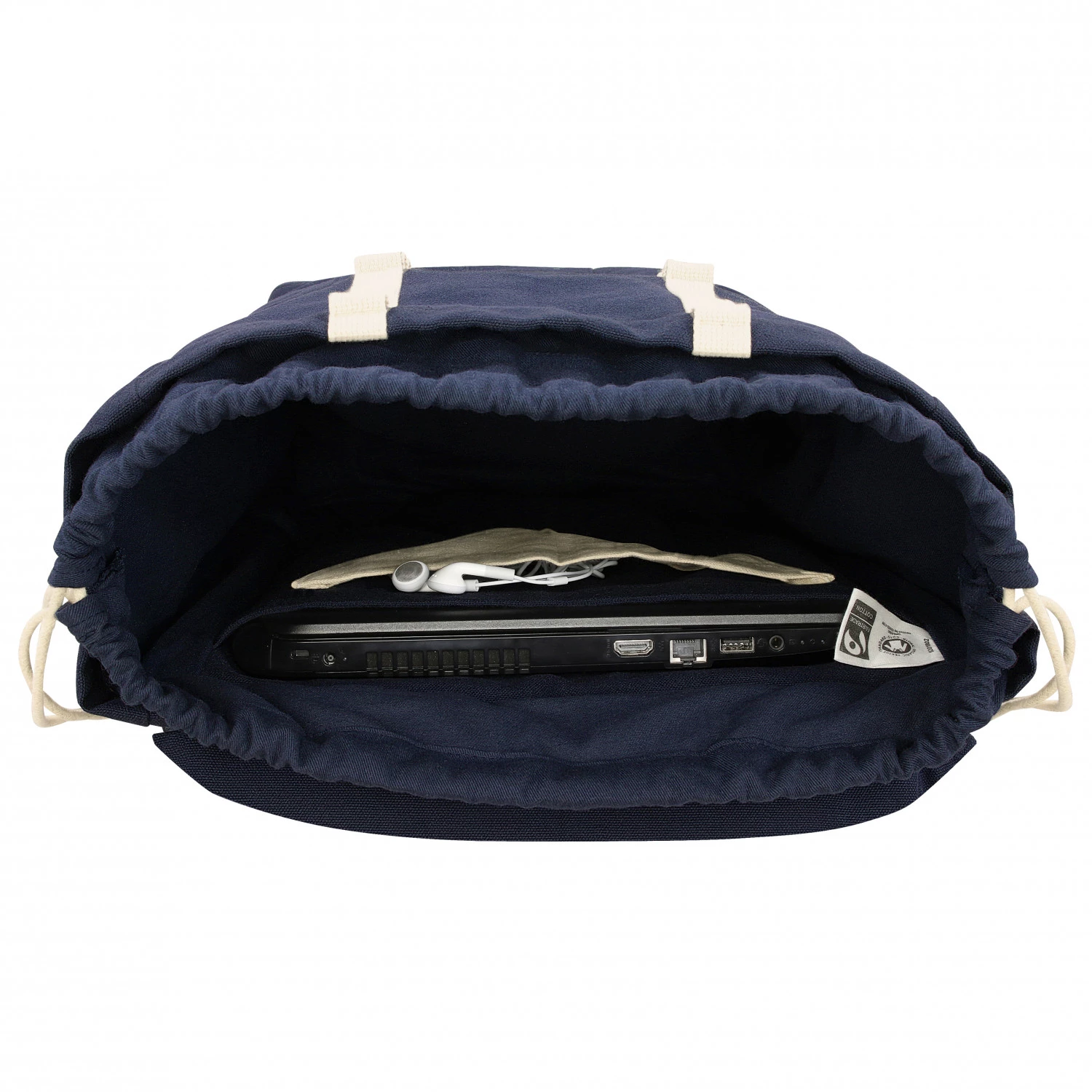 Le sac à dos Mela V de la marque MELAWEAR prouve que les articles produits de manière équitable et écologique sont cool ! Ce modèle est produit en Inde. Il est composé de coton biologique et certifié en conséquence. Il offre un volume de 20 litres, ce qui est suffisant pour les objets du quotidien en ville. De plus, il marque des points avec son grand compartiment pour ordinateur portable. Le haut du sac est attaché par deux boucles élégantes qui permettent d’adapter le volume du sac selon les besoins. De plus, le compartiment principal est sécurisé par un cordon de serrage semblable à ceux que l’on retrouve sur les sacs de sport. Le dos rembourré apporte plus de confort lors des longues journées. Le petit compartiment caché sur le côté est zippé. Il est idéal pour ranger un smartphone ou un passeport.