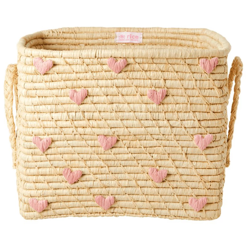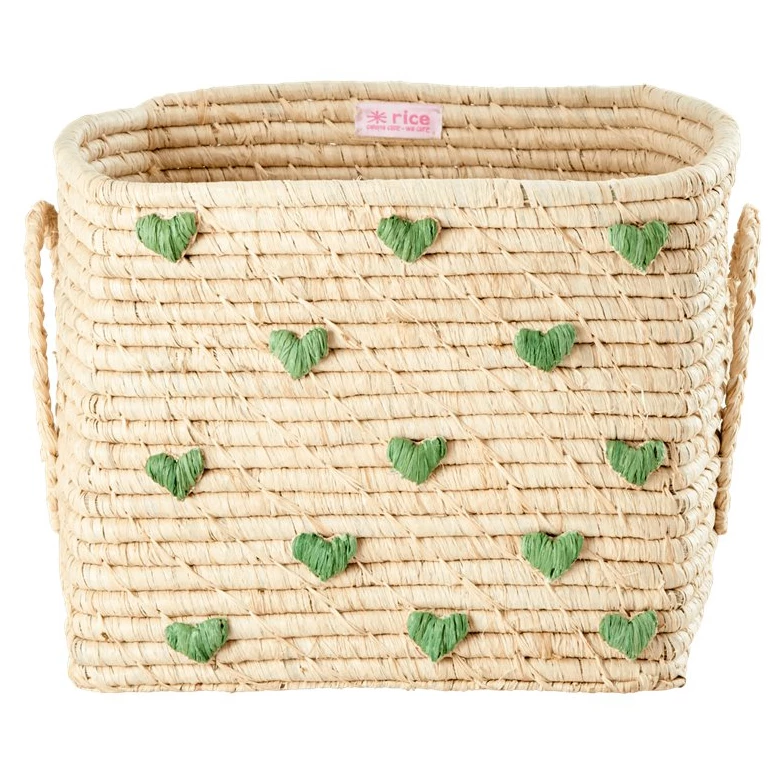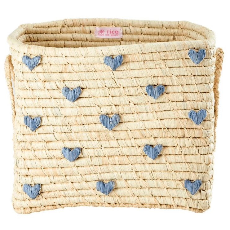 Rice – Raffia Square Basket with Raffia Handles – Boîte de rangement